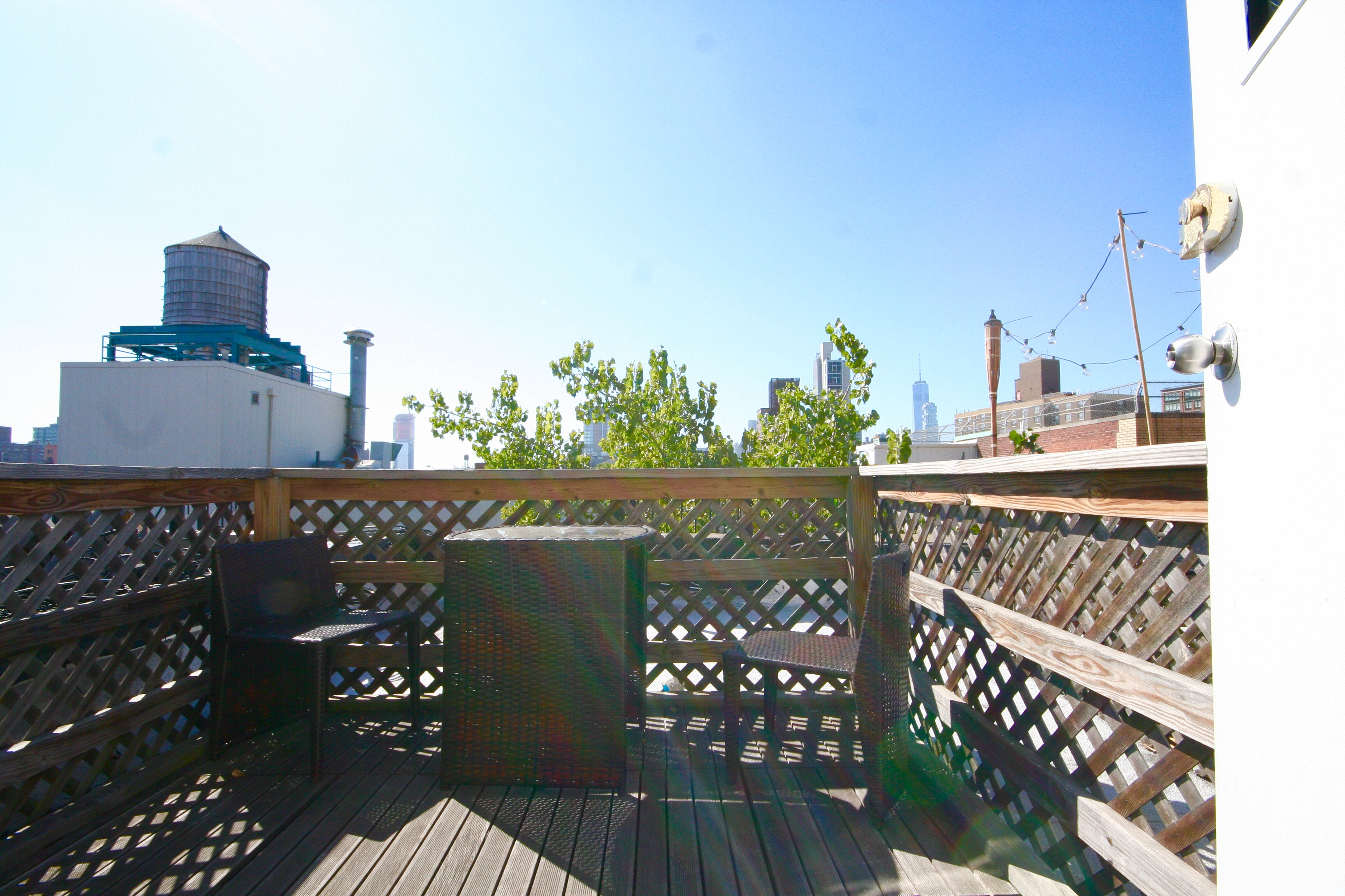 Duplex flex two bedroom, features two spacious bedrooms with ample closet space and storage space. This unit is also characterized by its tile bath with two windows that pull in lots of natural light, the separate kitchen provides access to the private roof deck with its intricate spiral staircases and amazing open views of the East Village. The finishing touch is its sea haze colored walls and hardwood flooring found throughout the apartment. .